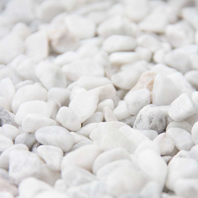 Carrara Grind, originaire d'Italie, est un gravier décoratif raffiné de couleur blanc neige qui ajoute une atmosphère élégante et luxueuse à votre espace extérieur. Notre gravier de Carrare est soigneusement conçu et artificiellement arrondi pour créer un produit gracieux et durable avec une apparence élégante.